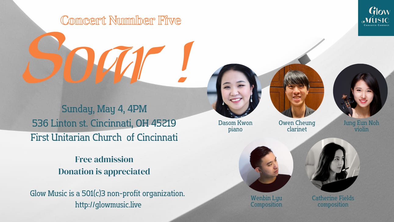 Mark Your Calendar!You are cordially invited to our annual concert — Concert Number Five: SOAR! Join us for an inspiring afternoon of classical music in the beautiful sanctuary of the First Unitarian Church of Cincinnati. The concert will take place on Sunday, May 4th at 4:00 PM. This year’s selected artists are preparing a thoughtful program of classical music, offering an afternoon of depth and variety. | ![]() First Unitarian Church of Cincinnati |